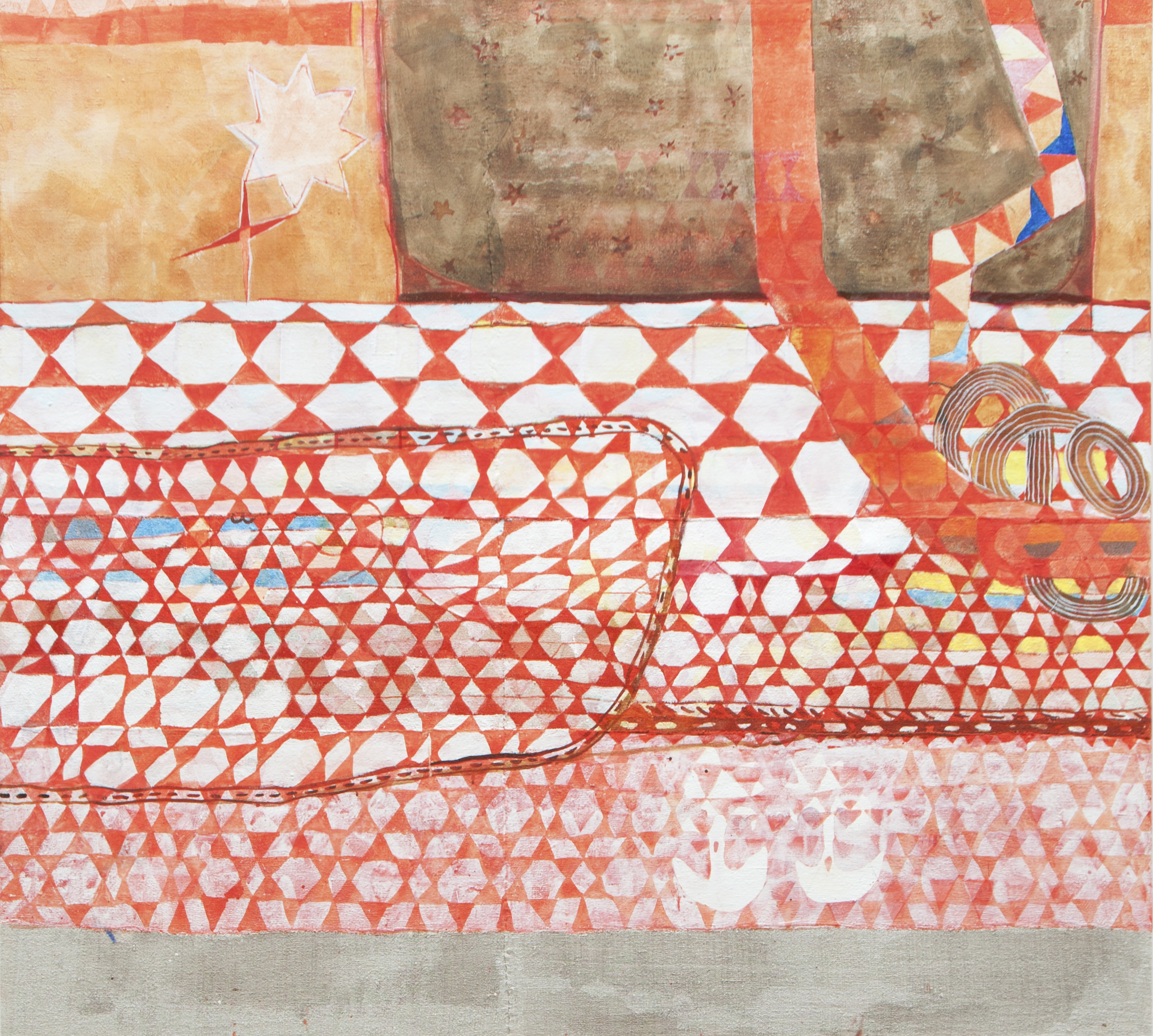 Mit großer Eigenständigkeit, Sensibilität und Tiefe präsentiert Detel Aurand (Galerie Claeys, Freiburg) Werke zwischen Abstraktion und Figuration. Ihre poetischen, spirituell geprägten Arbeiten entstehen aus inneren Bildern – inspiriert durch Natur, persönliche Erlebnisse oder Träume. Aurands Karriere verlief global, mit Stationen in Reykjavik, Berlin oder Indien.